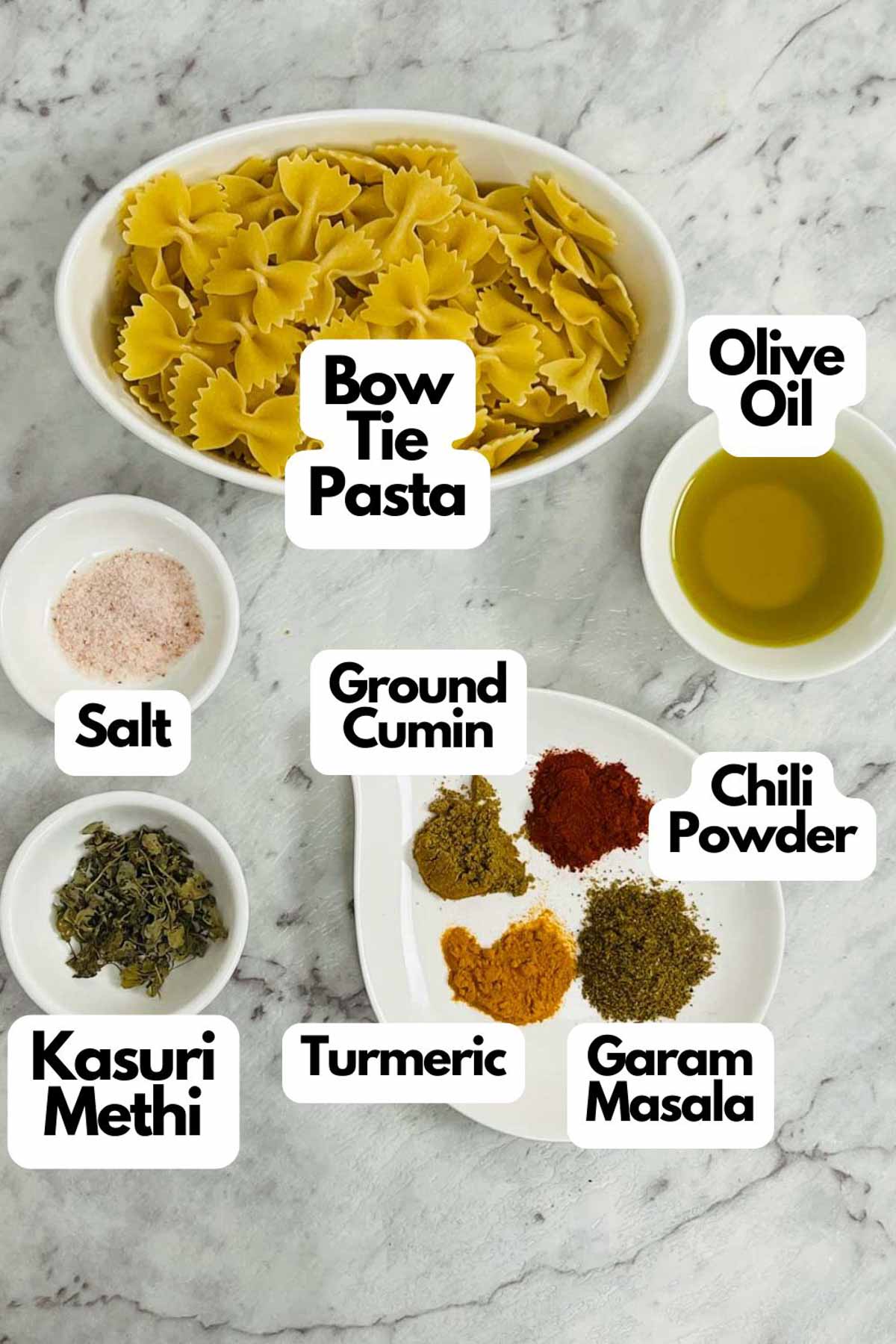 Pasta: I used farfalle (bow-tie or butterfly pasta). However, you can use other types of pasta as per your preference.