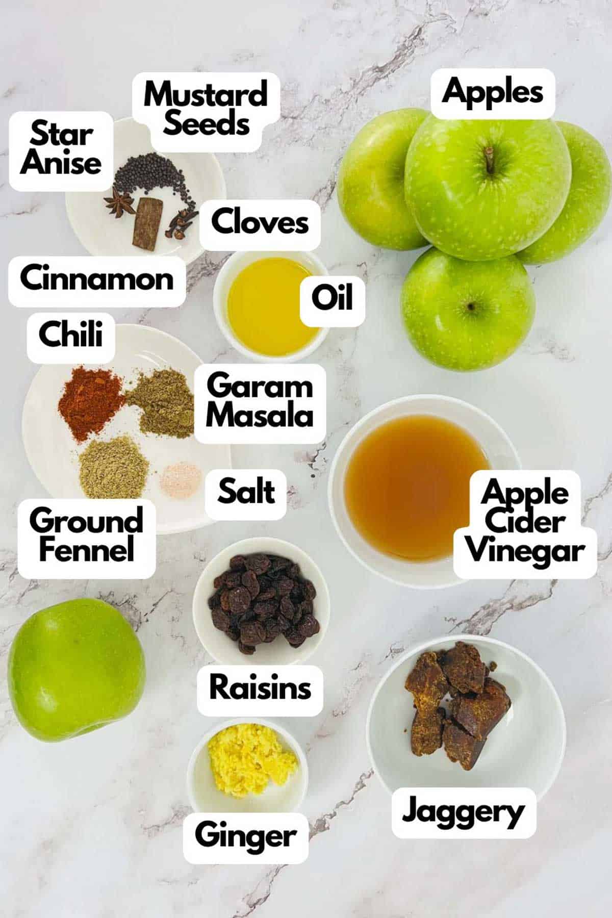 - Next, add the apples, raisins, garam masala, chili powder, fennel powder, salt, jaggery (or brown sugar), and apple cider vinegar.