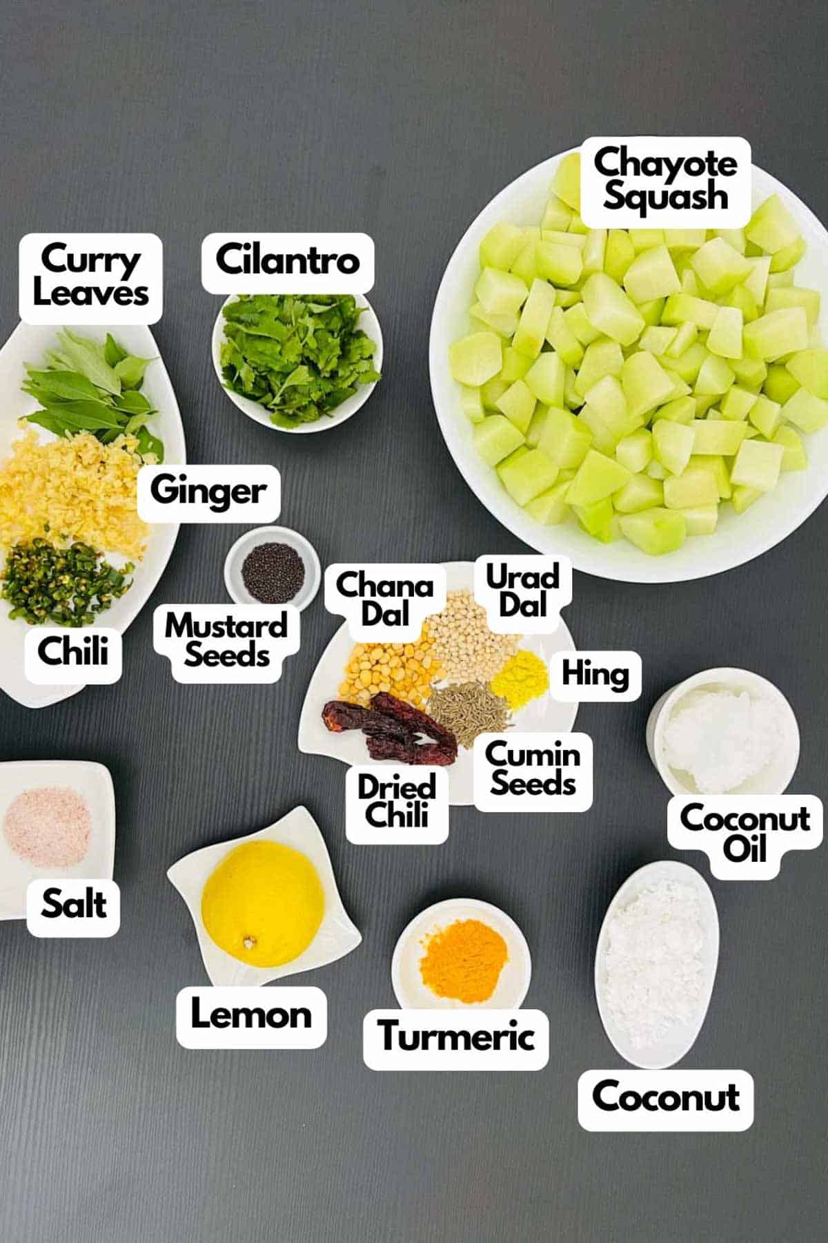 This vegan and gluten-free squash curry is made by cooking the chayote squash in a simple seasoning (tempering/tadka). Also popular as chow-chow poriyal, it is ready in less than 15 minutes once the chayote is peeled and chopped. In fact, peeling the chayote is the most time-consuming part of making this dish.