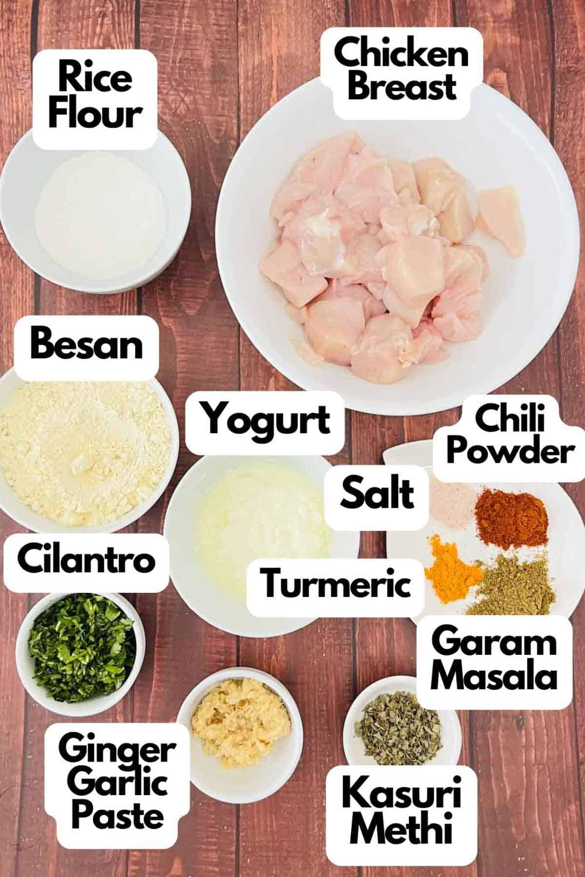 Chicken: Use skinless, boneless chicken breast pieces to make pakoda. Cut them into 1-1.5 inch pieces.
