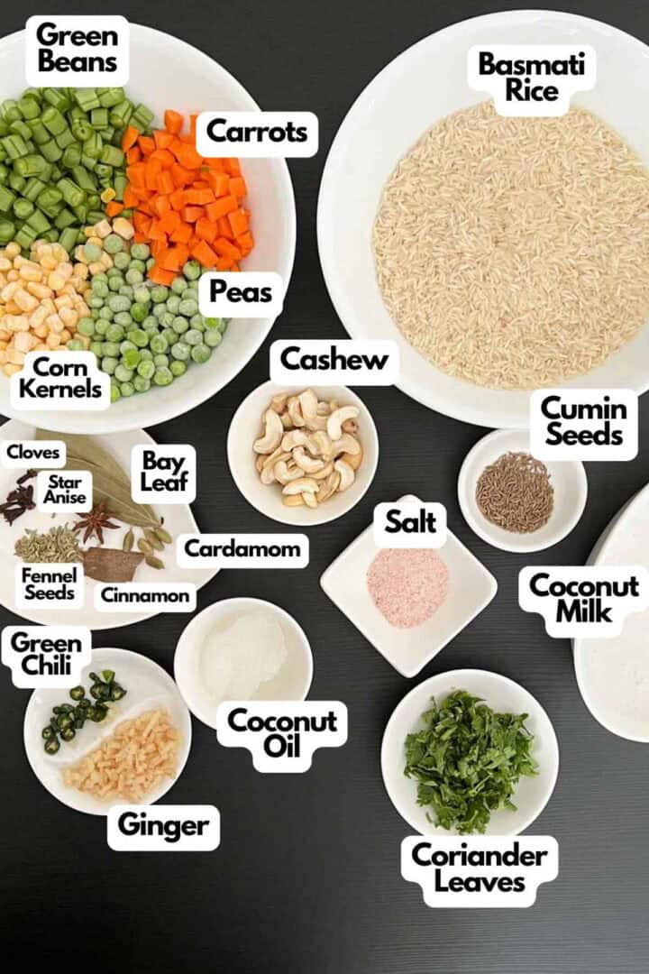 Coconut milk pulao is a wholesome and delicious rice-based dish. Made without onion and garlic, this easy coconut pulao is ready in 20 minutes and is perfect for lunchboxes, potlucks, and gatherings. Naturally gluten-free and vegan.