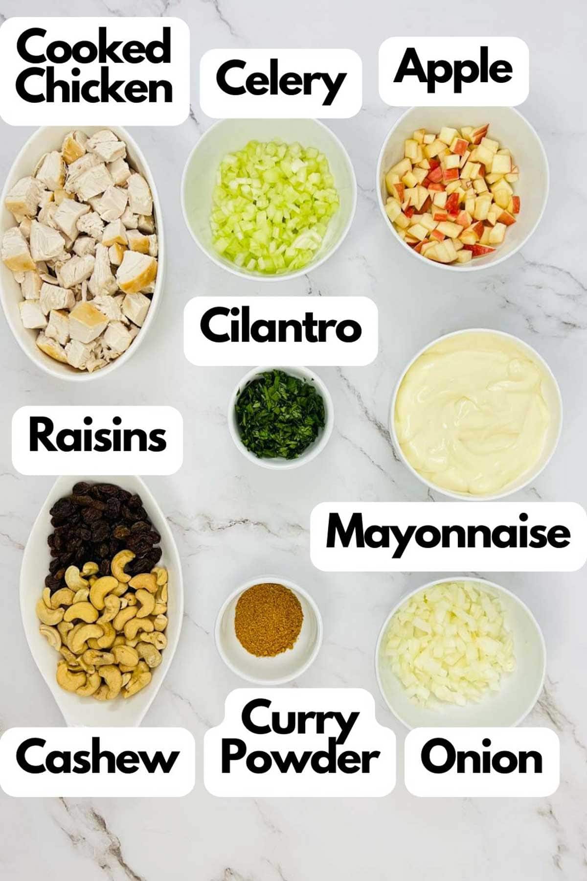 Nuts: In my curry chicken salad recipe, I have used toasted cashews. You can replace them with different nuts like almonds, pecans, or walnuts for flavor variation. These roasted mixed nuts are a great alternative.