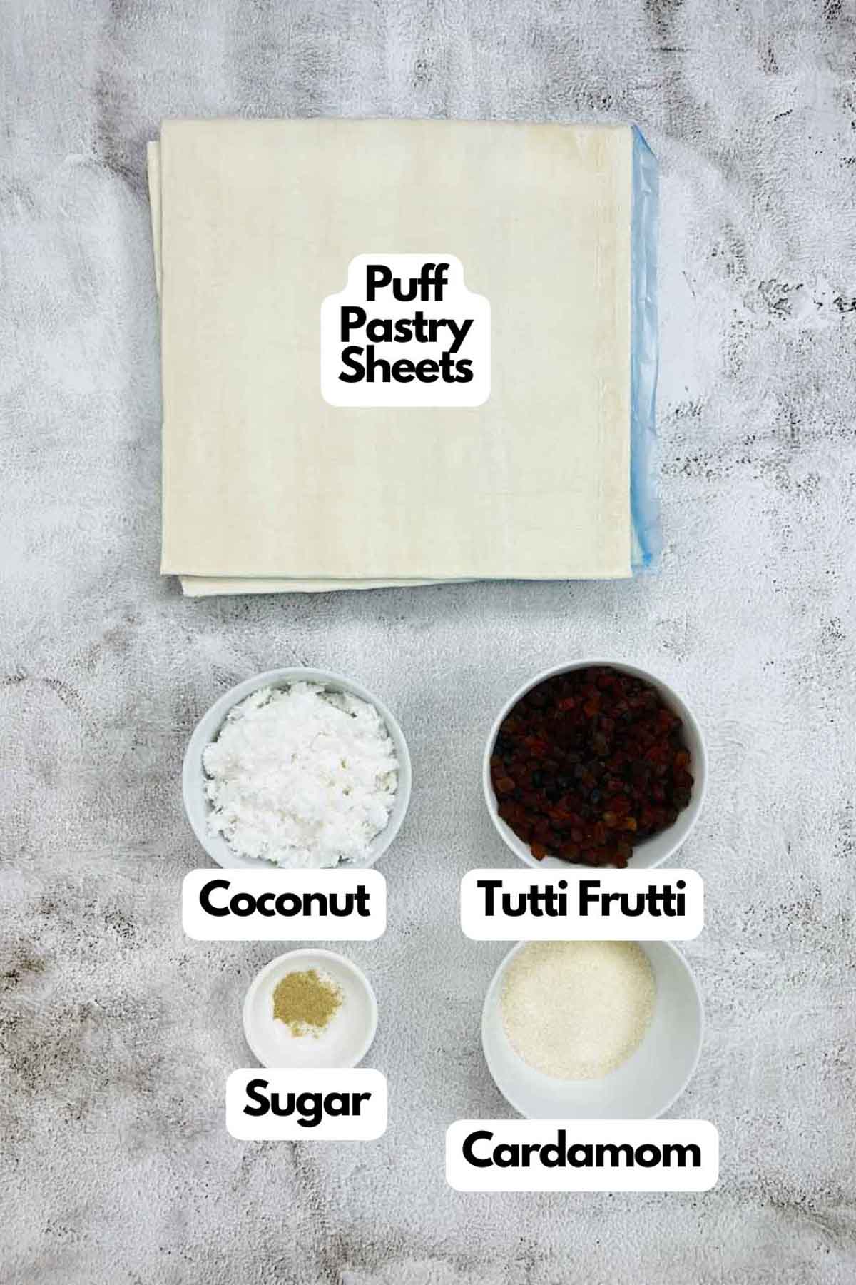 Make sure the coconut mixture has cooled down completely before filling it in the puff pastry sheets.