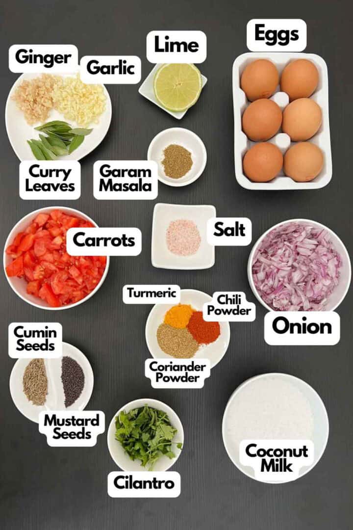 If you are planning to freeze this curry, I would recommend freezing the masala base only. Frozen eggs may tend to become chewy and rubbery. Use this recipe to make the masala base, blend it, and simmer with coconut milk. Once it cools down, place it in a freezer-safe container and freeze it for 3-4 months. When using, simmer the curry sauce in a saucepan. Add boiled eggs and simmer for a few minutes, then finish it with lime juice and cilantro.