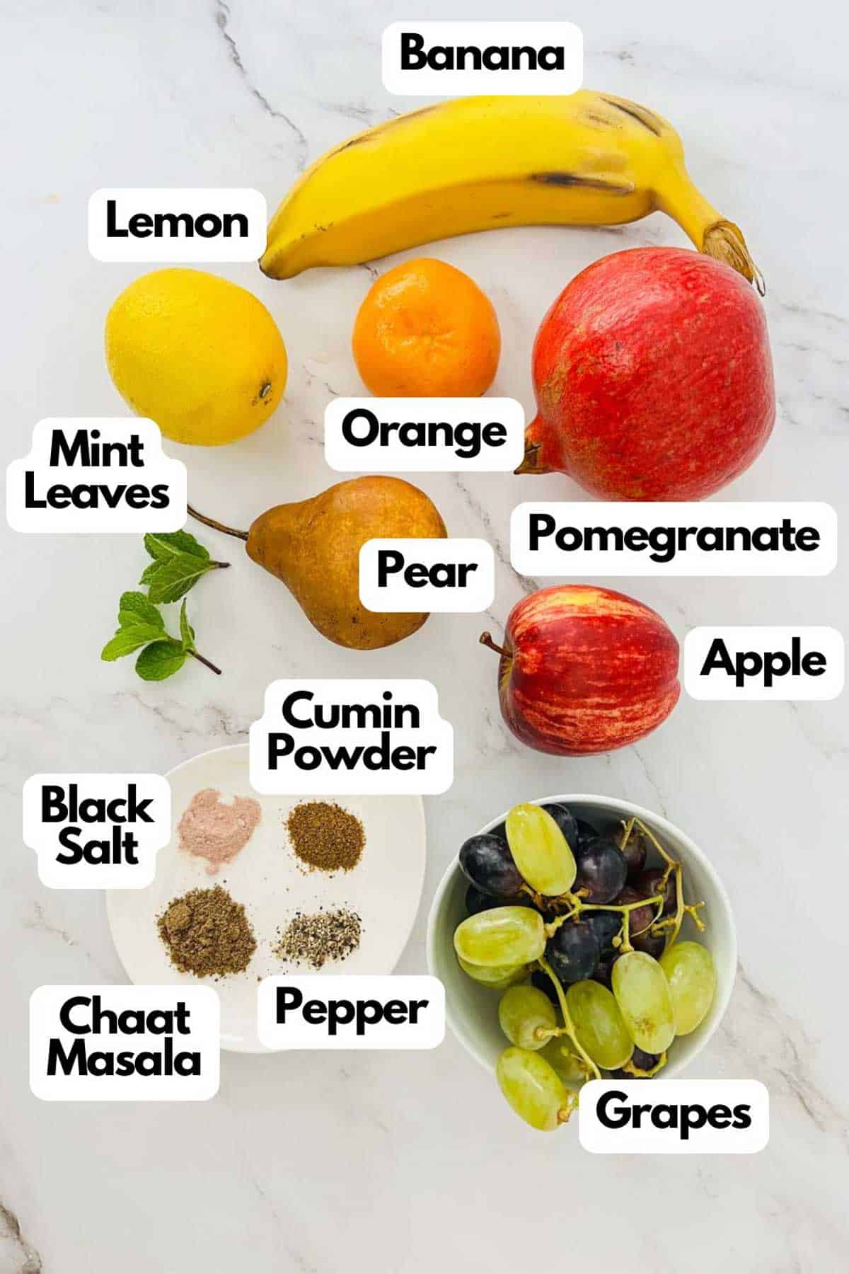 The most commonly used fruits in this Indian fruit salad are apples, bananas, orange or mandarine, pomegranates, and grapes. Other fruits like papaya and mango are also used when in season. However, there are some fruits that are not ideal for making a fruit chat.