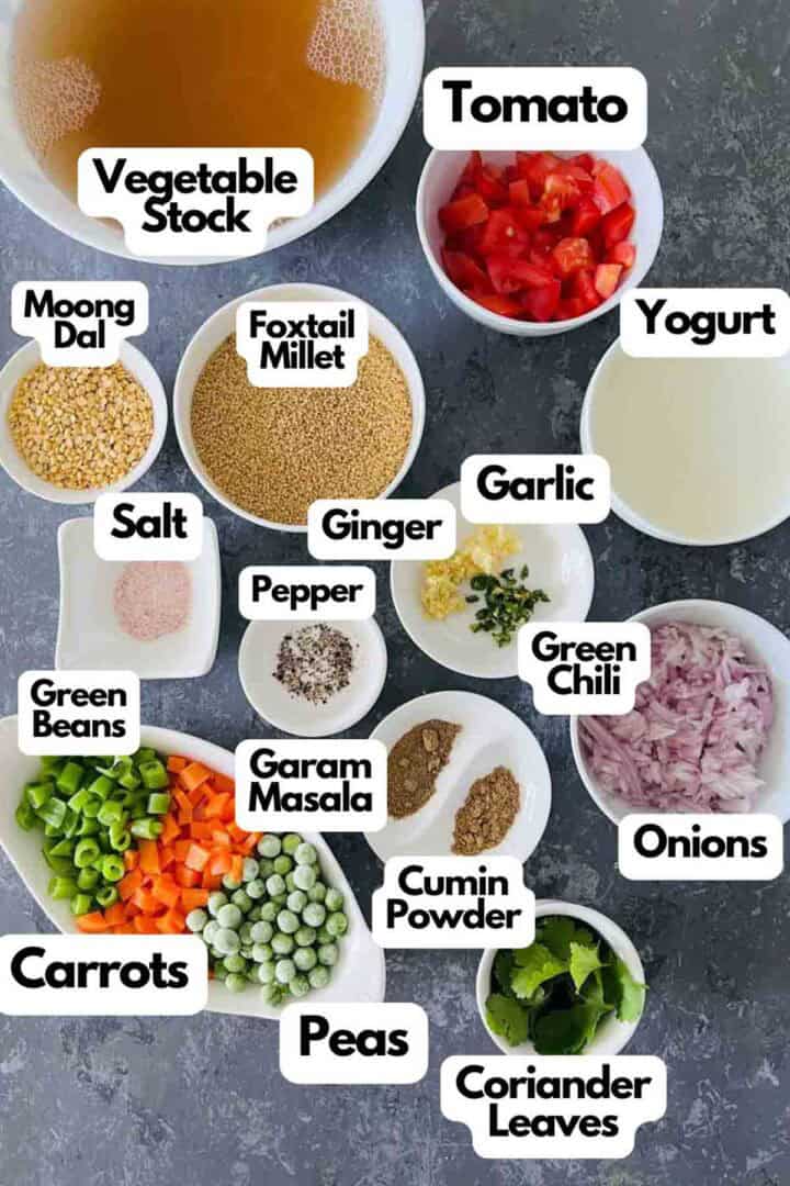 I use foxtail millet in this recipe. Other millets like pearl millet, little millet, barnyard millet, and proso millet also can be used to make the soup.