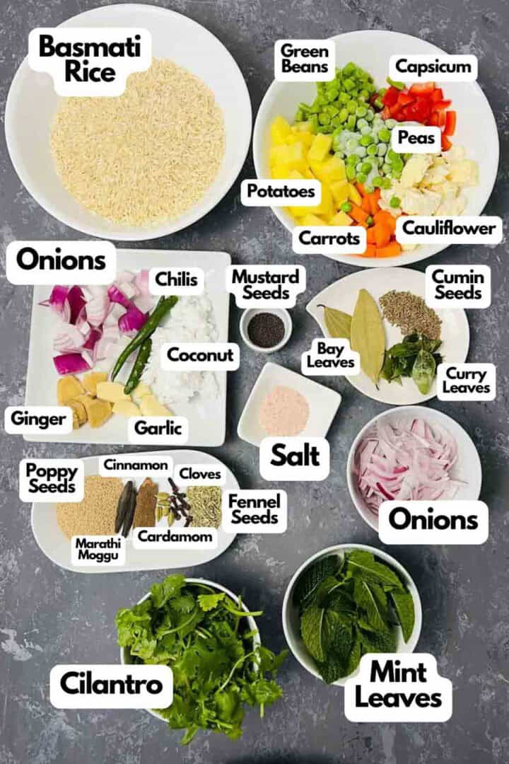 Vegetable pulao is rice and vegetables cooked together with flavorful and aromatic spices. This Karnataka-style pulao is made using a masala base of spices, herbs, and coconut. Made this easy one-pot dish in an