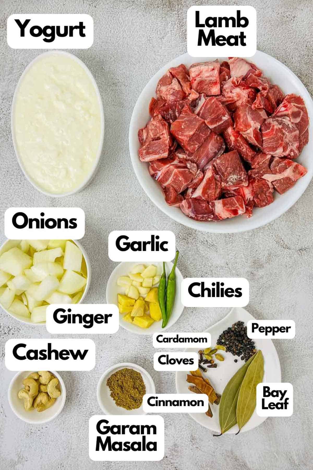 Start with browning the meat and cooking onion, yogurt, and cashews as per this recipe in a frying pan. Transfer it to a slow cooker and add one cup of water. Cook for 6 to 8 hours on high or until the lamb is tender.