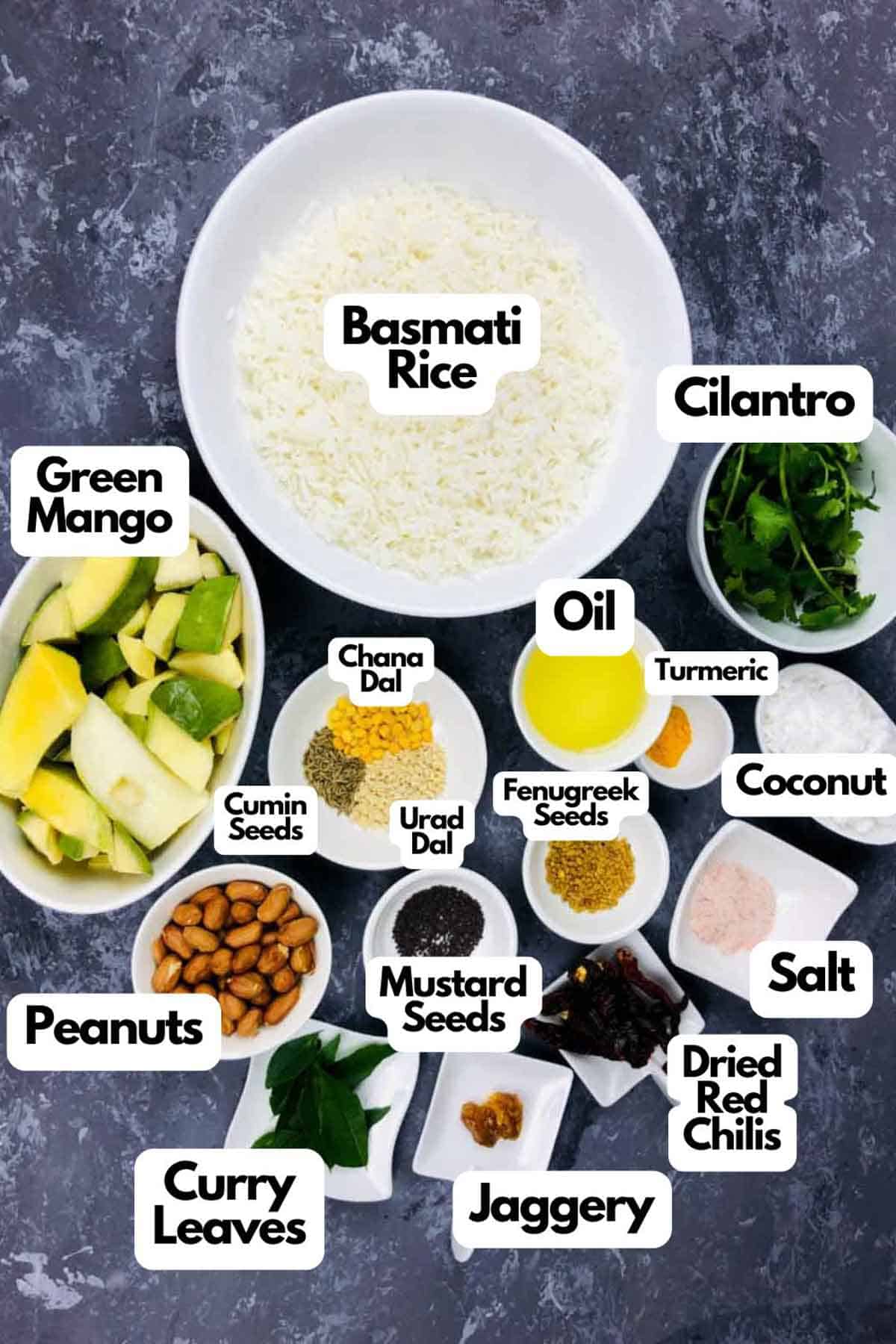 Use sour mangos to make this mango rice. If the mangoes are not sour enough, you may add a small amount of tamarind while grinding the gojju.