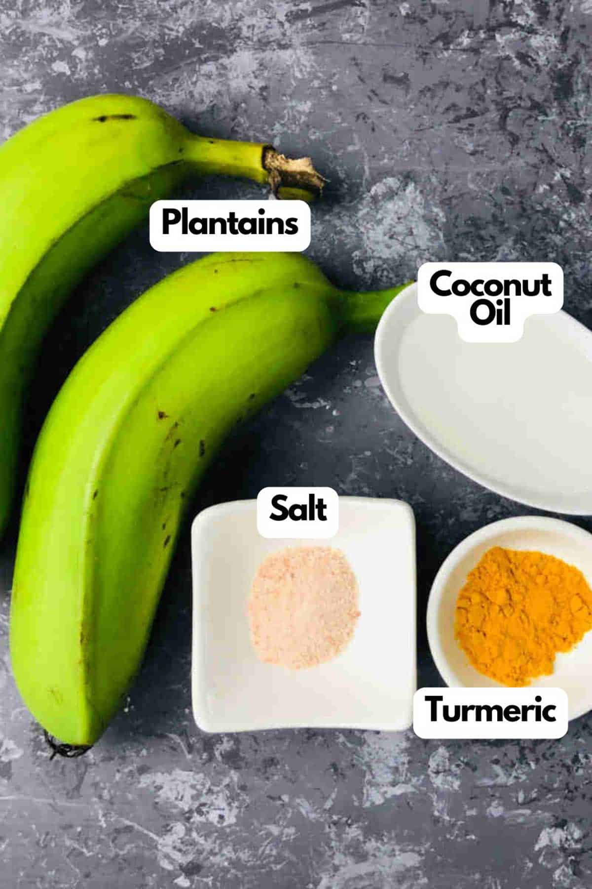 Plantains: Also called cooking bananas or raw bananas, this is the main ingredient.