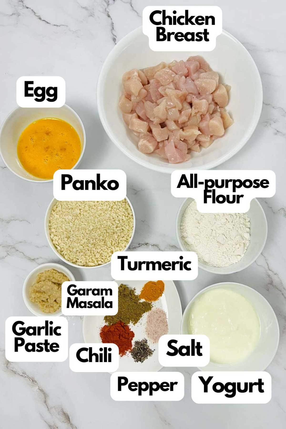 Coating: I use all-purpose flour, egg, and panko crumbs to coat the marinated chicken.