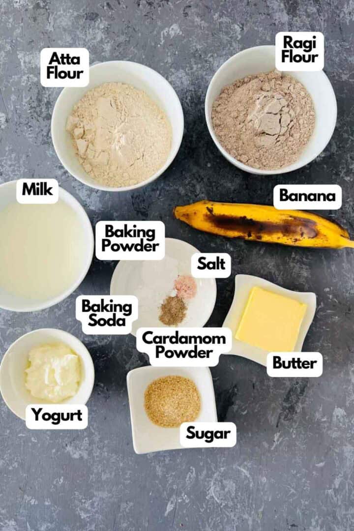 Flours: I have used ragi flour and atta (Indian whole wheat flour). Ragi can be substituted with jowar flour (sorghum). You can also replace atta with oats flour or plain flour.