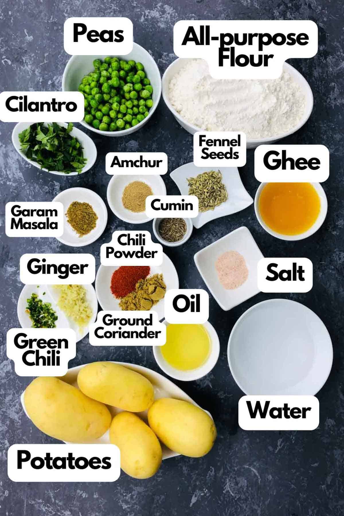 For 2 cups of flour, I use around ¼ cup of ghee and just under ½ cup of water. These measurements are perfect for getting crispy and flaky samosa. For this dough, 500 grams of potato is sufficient to make the filling. This recipe makes 12 samosas.