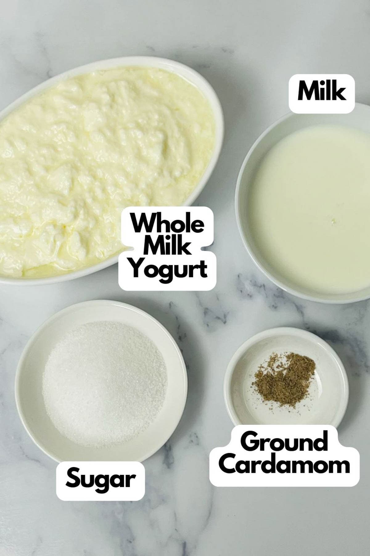 Yogurt: Use plain whole milk yogurt to make creamy lassi. Thick yogurt will help make the lassi creamy. Low-fat yogurt can also be used for a lighter version.