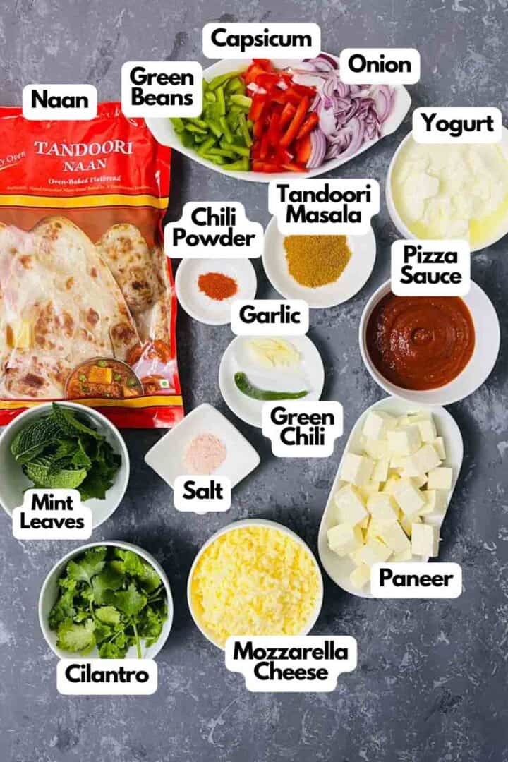 Tandoori masala is the main spice blend and adds a nice smoky flavor to the pizza. It is easily available in Indian grocery stores and supermarkets. If you don't have access to it, substitute it with garam masala.